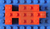 Los personajes están conformados con bloques y colores distintos que los diferencian entre sí en la escena.