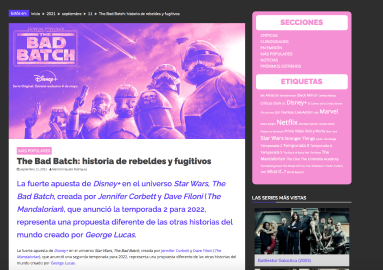 El sitio tiene los artículos divididos en distintas secciones según del tema a tratar en el mismo y del estado de la serie en cuestión. También se divide por etiquetas relacionadas a lo desarrollado.