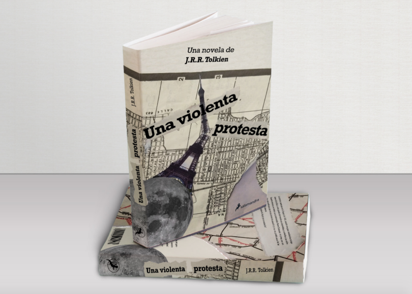 Los encuadres utilizados tienen una primera relación de imagen-texto, la cual difiere según el producto, en este caso la cubierta del libro ficticio Una Violenta Protesta.