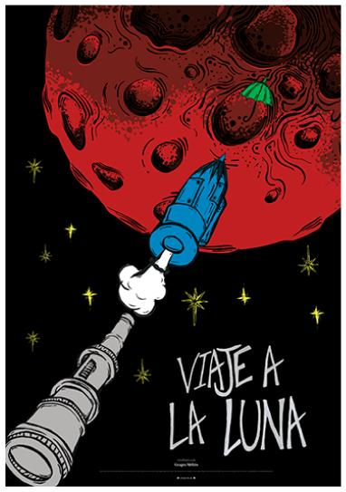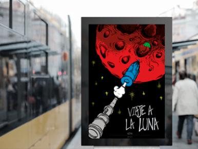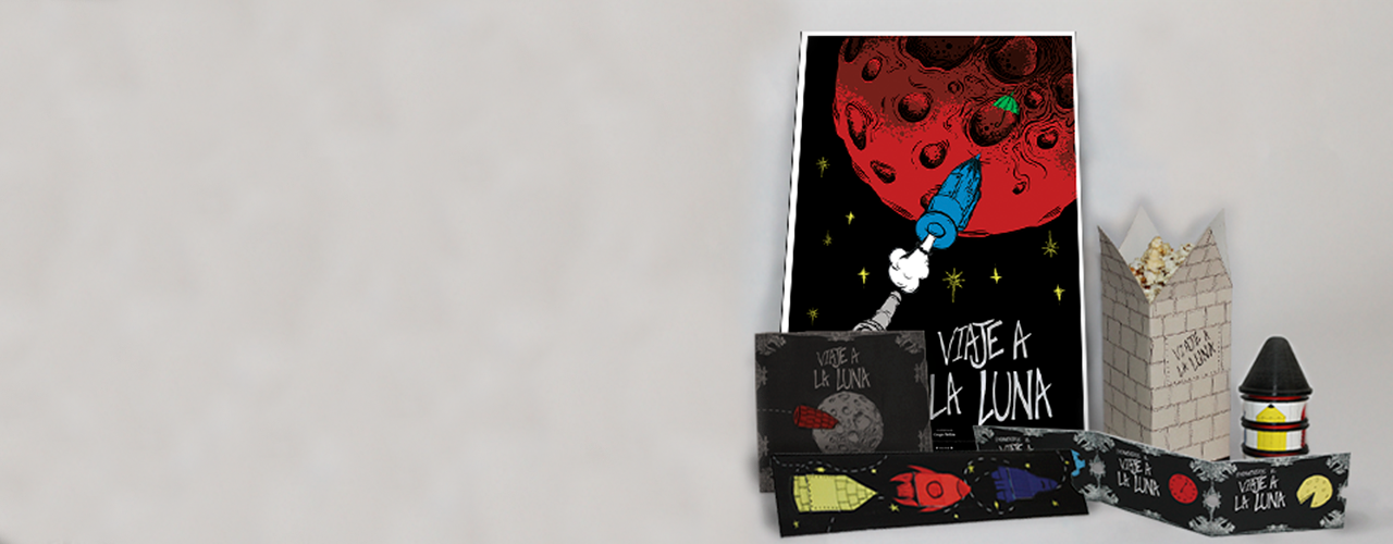 Diseño y desarrollo del sistema gráfico para promocionar la película Viaje a la Luna del director e ilusionista Georges Méliès.