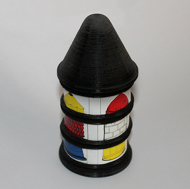 Por último, el souvenir que se lleva las personas al final es un puzzle giratorio de 3 piezas para combinar de distintas formas el cohete.